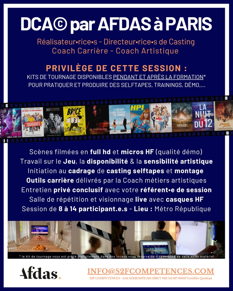 Encadré·e·s par les formateur·rice·s DCA©, expert·e·s de l'industrie du cinéma et de l'audiovisuel, vos essais, castings, selftapes, trainings et démos gagnent en justesse, impact et puissance d’interprétation.
