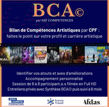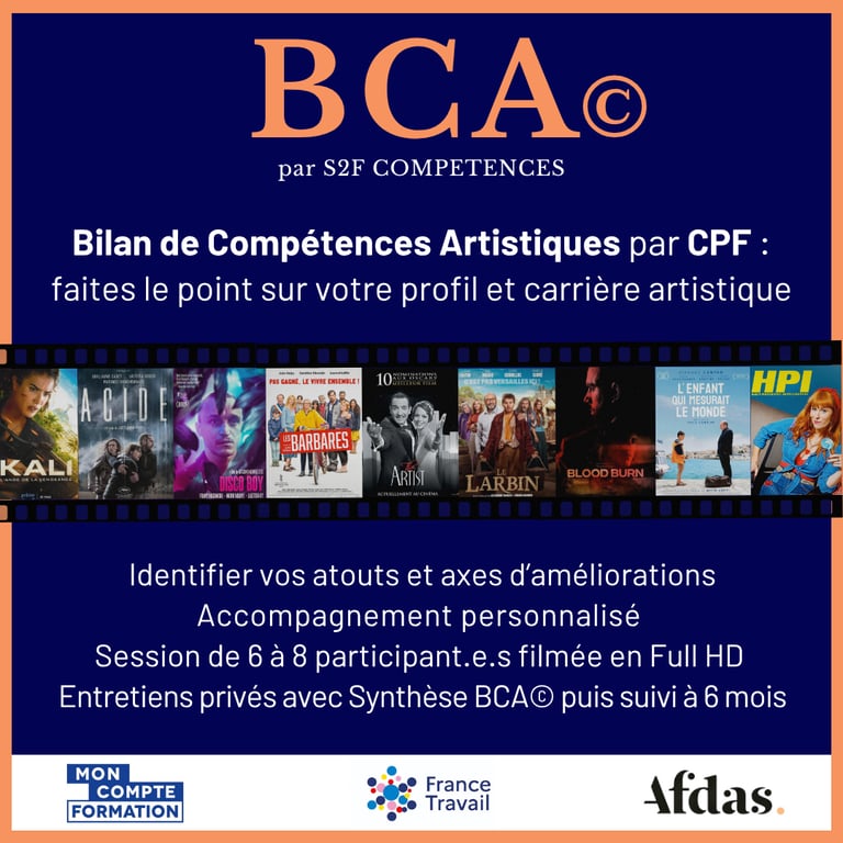 En entretien privé avec des Intervenant•e•s tel•le•s que des Directeur•rice•s de Casting, une synthèse confidentielle conclue votre BCA© avec des éléments concrets pour réaliser vos objectifs professionnels : outils, méthodes, valorisation des atouts et conseils en formations. Le + BCA© : vous bénéficiez d’un suivi gratuit à 6 mois.